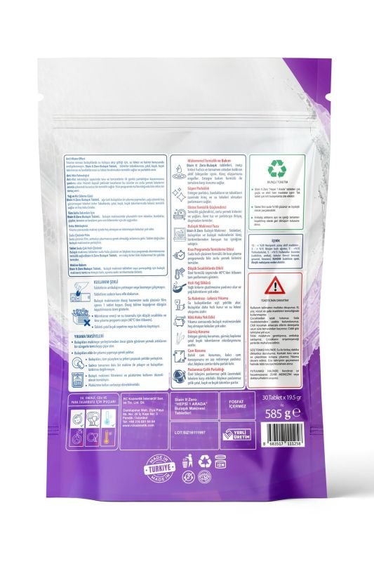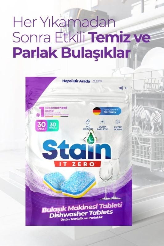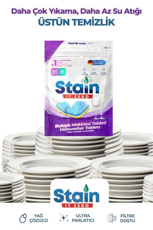 Stain İt Zero Hepsi Bir Arada Bulaşık Makinesi Tableti & Güçlü Temizlik Üstün Parlaklık- 30 Yıkama